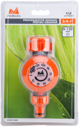 Este un dispozitiv simplu de tip timer cu ajutorul caruia puteti selecta o durata de udare de pana la 120 de minute si se va opri automat, reducand astfel risipa de apa.