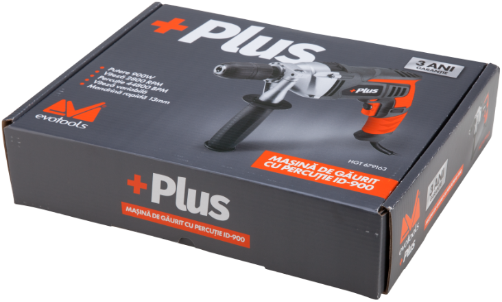 Masina de gaurit cu percutie ID900 EPTO PLUS este recomandata pentru insurubare sau gaurire cu/fara percutie in beton, metale feroase si neferoase, lemn, material plastic si piatra avand o capacitate gaurire de: otel 10mm, beton 13mm, lemn 30mm.